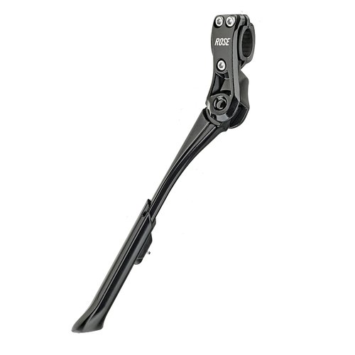 Universalständer zur Montage an der linken Kettenstrebe Der gummierte Klemmbereich sorgt für eine lackschonende Montage Mittels Knopfdruck lässt sich die Höhe schnell verstellen und kann daher für 24"-29"-Räder verwendet werden... weitere Infos im ROSE Bikes Online-Shop!