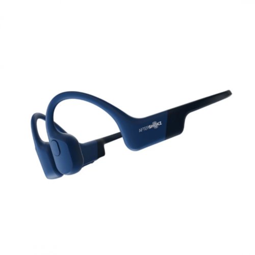 AfterShokz Aeropex Wireless Headphones BlauDrahtlose Knochenleitungskopfhörer zum Tragen beim Laufen oder Radfahren. Die Knochenleitungstechnologie überträgt Musik über die Wangenknochen und stellt sicher, dass die Ohren vollständig geöffnet bleiben, um Umgebungsgeräusche zu hören.