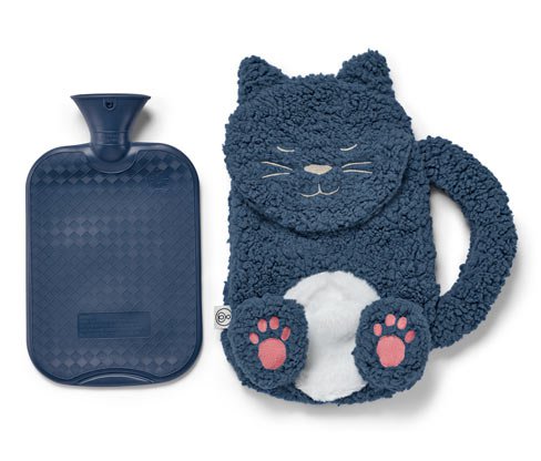 Wärmflasche »Katze« Farbe: [Navy mit rosenholzfarbenen und cremeweißen Details] Material: [Wärmflasche 100% Polyvinylchlorid Bezug 100% Polyester Schraubverschluss 100% Polypropylen Klettverschluss 100% Polyester] Maße: [Ca. 32 x 20 cm Materialstärke ca. 1,9 mm Ø Einfüllöffnung ca. 3 cm.] Inhalt / Zubehör: [Inkl. Bedienungsanleitung] Gewicht: [Ca. 330 g] Füllmenge: [Ca. 1,8 l] Gebrauchsanweisung: [Abnehmbarer Strickbezug waschbar bei 30 °C Ohne Wärmflasche für Kinder unter 36 Monaten geeignet] Warnhinweise: [Kein Medizinprodukt] Sonstige Hinweise: [Mindesthaltbarkeit: 5 Jahre] Wärmflasche mit flauschigem Katzenbezug|Robuste Material|Mit Schraubverschluss|Füllmenge ca. 1,8 l|Bezug abnehmbar und waschbar|Auf Schadstoffe geprüft – von externen, akkreditierten Instituten