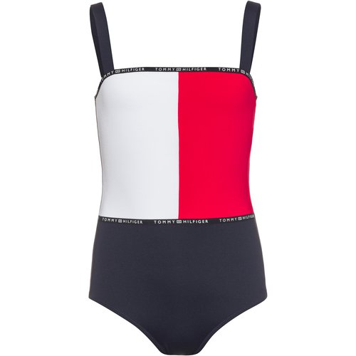 Badeanzug im Colorblock-Design; gerader Ausschnitt; Besatz mit Markendetails am Ausschnitt und am Bauch; breite, elastische Träger; gefüttert; mit recycelten Materialien hergestellt; Material 83% Polyamid, 17% Elastan.