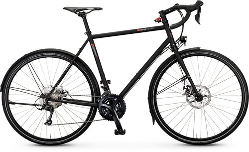 VSF Fahrradmanufaktur T-Randonneur Sport im Überblick Das T-Randonneur Sport von VSF Fahrradmanufaktur ist der perfekte Begleiter für deine Radreisen und langen Abenteuer. Mit seinem robusten Rahmen aus Chrom-Molybdän-Stahl bietet es nicht nur Stabilität, sondern auch ein ausgezeichnetes Fahrgefühl. Die 18-Gang-Kettenschaltung sorgt für eine mühelose Anpassung an verschiedene Geländearten, während die mechanischen Scheibenbremsen hinten für zuverlässige Sicherheit sorgen, egal bei welchen Bedingungen. Darüber hinaus sind praktische Taschenaufnahmen integriert, um dein Gepäck sicher und bequem zu transportieren. Besondere Features des T-Randonneur Sport Mit seinem durchdachten Design und den vielseitigen Einsatzmöglichkeiten bietet dir das T-Randonneur Sport alles, was du für unvergessliche Radreisen benötigst: Die integrierten Taschenaufnahmen, die 18-Gang-Kettenschaltung sowie die zuverlässigen mechanischen Scheibenbremsen sind nur einige der Highlights, die dir ein komfortables und sicheres Fahrerlebnis garantieren. Schaltung: Die Shimano Sora RD-R3000, 9-fach Kettenschaltung zeichnet sich durch ihre Vielseitigkeit und Präzision aus, was sie ideal für Gelegenheitsfahrer und fortgeschrittene Hobby-Fahrer macht. Egal, ob auf flachen Straßen oder in hügeligem Gelände, die 18-Gang-Kettenschaltung ermöglicht eine optimale Anpassung an verschiedene Fahrbedingungen und sorgt somit für ein angenehmes Fahrerlebnis auf dem VSF Fahrradmanufaktur T-Randonneur Sport. Beleuchtung & Anbauteile: Das T-Randonneur Sport ist mit einer zuverlässigen Beleuchtung ausgestattet, vorne mit dem Busch & Müller Lumotec Avy (40 LUX) und hinten mit dem Busch & Müller Xeltec, was dir Sicherheit bei Dunkelheit bietet. Zusätzlich sorgen die Schutzbleche dafür, dass du auch bei wechselhaftem Wetter komfortabel pendeln kannst, sodass das Modell nicht nur straßentauglich, sondern auch praktisch für den täglichen Einsatz ist. Rahmen & Gabel: Der Rahmen aus 25 CrMo 4, 2-fach konifiziert, überzeugt durch seine hervorragende Stabilität und Langlebigkeit, während die Diamantform für eine optimale Kraftübertragung sorgt. Ausgestattet mit einer 28 Zoll Aluminium-Gabel mit Steckachse 12 x 100 mm, bietet sie zusätzlich eine präzise Steuerung und Flexibilität auf unterschiedlichsten Untergründen. Dieses Modell richtet sich an Radreisende und Abenteuerlustige, die Wert auf ein zuverlässiges und komfortables Fahrerlebnis legen. Bremse: Die mechanischen Scheibenbremsen TRP Spyre bieten eine solide Bremsleistung und eignen sich hervorragend für den Einsatz im Touring-Bereich. Sie überzeugen durch ihre einfache Wartung und präzise Dosierbarkeit, was sie besonders attraktiv für Radreisende und abenteuerlustige Fahrer macht, die auch in anspruchsvollen Situationen auf Sicherheit setzen. Reiserad der mittleren Preisklasse für Abenteuerlustige und Radreisende Das T-Randonneur Sport von VSF Fahrradmanufaktur ist ein Reiserad der mittleren Preisklasse, das sich ideal für Radreisende und abenteuerlustige Fahrer eignet. Es bietet vielseitige Einsatzmöglichkeiten für Gelegenheitsfahrer und fortgeschrittene Hobby-Fahrer, die sowohl im Alltag als auch auf längeren Touren ein komfortables und zuverlässiges Fahrerlebnis suchen. T-Randonneur Sport, Trekkingrad, VSF Fahrradmanufaktur