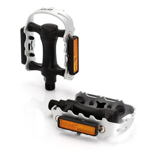 Die XLC Fahrradpedale mit einem Körper aus robustem Kunststoff, einem Käfig aus Aluminium und einer Achse aus Boron-Stahl sind ideal für All Terrain Räder, Citybikes, Trekkingräder und Mountainbikes geeignet. Die Bärentatzen Pedale bieten genügend Halt für die Füße während der Fahrt. Die Kugellager sorgen für ein angenehmes Tretgefühl. Gemäß StVZO ist das Pedalset mit Reflektoren ausgestattet. Der Achsdurchmesser beträgt standardmäßig 9/16 Zoll. Bitte beachte beim Einbau das Rechts- bzw. Linksgewinde. Technische Daten: Hersteller: XLC Modell: PD-M01 Farbe: schwarz, schwarz/silber Material Pedalkörper: Kunststoff Material Pedalkäfig: Aluminium Material Pedalachse: Boron-Stahl Gewindegröße: 9/16" Lager: Kugellagerung Typ: Bärentatzen Sicherheit: Reflektoren gemäß StVZO Maße: L 102 mm x B 63 mm x H 30 mm Einsatzbereich: Mountain, All Terrain, Trekking Gewicht: 300 g Lieferumfang: 2 Pedale