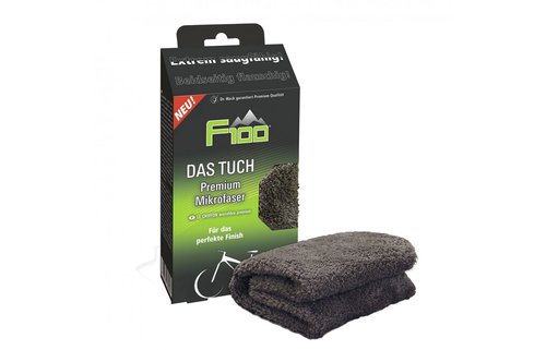 F100 Premium Mikrofaser TuchF100 DAS TUCH: Das erstklassige Mikrofasertuch für das perfekte Finish an Ihrem Fahrrad. DAS TUCH wurde von der Dr. Wack-Anwendungstechnik aus über 55 High-End Alternativen ausgewähltEigenschaften- Ideal zur Nachbehandlung nach der Fahrradwäsche- Hohe Saugkraft zum „Abledern“- Perfekt zur Verarbeitung des F100 Matt-Pflege Sprays- Zum Auftragen des F100 Schutz- und Pflegeöls (nicht zum Nachwischen, da durch hohe Saugkraft zu viel Produkt entfernt werden kann)- Extrem weich und flauschig für besonders sanfte Oberflächenbehandlung- Beidseitiger Hoch-Flor – somit sehr lange einsetzbar, absolut sicher gegen falsche Anwendung und doppelte Nutzungsfläche- Nahtlos durch Ultra-Sonic-Cut für ein kratzfreies Auspolieren- Hält ca. 300 Waschzyklen- Sogar für empfindliche Lacke wie Klavierlack geeignet- Sehr angenehme und weiche Haptik