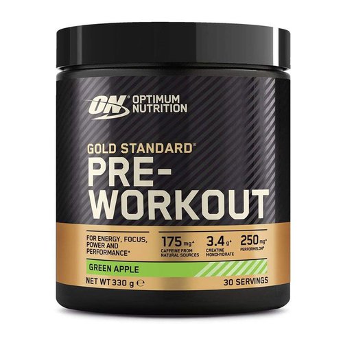 Was ist Optimum Nutrition Gold Standard Pre Workout? Bei dem Produkt handelt es sich um einen effektiven Pre-Workout Booster, welcher deine Fitnessleistung deutlich steigern kann. Das neue Gold Standard Pre-Workout von Optimum Nutrition ist n?mlich extra daf?r entwickelt worden, um deine Konzentration, Kraft sowie Ausdauer zu verbessern, damit du das Maximum aus deinem Workout rausholen kannst! Das Produkt hat eine perfekt konzipierte Formel, mit den qualitativhochwertigsten und bew?hrtesten Inhaltsstoffen, wie Koffein und Beta-Alanin sowie ebenfalls Creatin und Citrullin. Zus?tzlich versorgt Optimum Nutrition Gold Standard Pre Workout den K?rper mit einigen Vitaminen. Die wichtigsten Fakten im ?berblick F?rdert die allgemeine Fitnessleistung sowie Aufmerksamkeit und Konzentration 175 mg Koffein aus nat?rlichen Quellen Enth?lt Creatin, Beta-Alanin und Citrullin Vitaminkomplex deckt ?ber 100% des Tagesbedarfs F?r wen ist Optimum Nutrition Gold Standard Pre Workout empfehlenswert? Die Einnahme eignet sich f?r alle Personen, die ihre Leistung w?hrend des Workouts steigern wollen, um das Maximum herauszuholen.