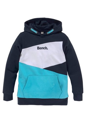 Sweatshirt für einen inspirierenden Look Ob Mode-Blogger oder nicht — dieses Kapuzensweatshirt »mit asymmetrischer Farbaufteilung« der Marke Bench. finden alle Jungs stylisch. Durch den Aufdruck wirkt es stylisch und cool. Die langen Ärmel enden in einem Rippbündchen. Es ist basic geschnitten, sodass der Tragekomfort nicht zu kurz kommt. Die vorne am Bauch aufgenähte Kängurutasche macht den bequemen Hoodie-Look komplett. Die angeraute Sweatware ist sehr weich und angenehm auf der Haut. Abwechslungsreich kombinierbar Das Kapuzensweatshirt kann für einen lässigen Skater-Style zu einer weiten Jeans und Sneakern kombiniert werden. Für kältere Tage bietet sich ein T-Shirt darunter an. So hält das Oberteil auch als Alternative zur Jacke her. Das vielseitige Sweatshirt »mit asymmetrischer Farbaufteilung« von Bench. ergänzt die Auswahl an stylischen Basics.