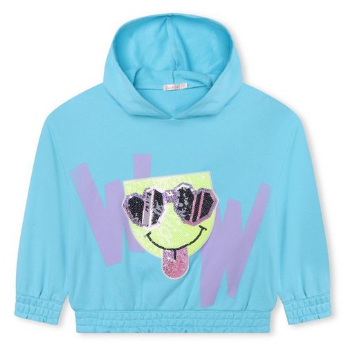 Billieblush Hoody Sweatshirt hellblau mit mehrfarbigen Pailletten versetztem Motiv in den Größen 4-12 Jahre