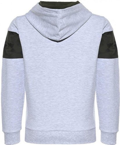 Jungen Hoodie Kapuzensweatshirt von blue effect zweifarbiges Sweatshirt mit dunkelgrün gefütterter Kapuze, Farbenblock: hellgrau melange, Camouflage grün, hellgrau, Blue Effect Emblem, Rippbündchen, Bauchtaschen