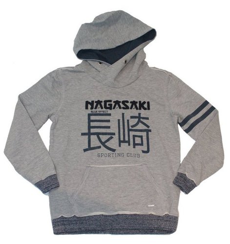 Kapuzensweatshirt Nagasaki von blue effect Pulli mit gefütterter Kapuze, andersfarbigen Bündchen, Motiv Nagasaki, Bauchtaschen, offene Kanten, kleine blue efect Plakette