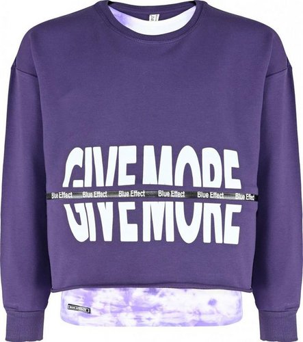 Blue effect Boxy Doppelshirt Top+,Sweatshirt Aubergine cooles Mädchenshirt Doppelshirt, batik Träger-Top, aubergines Sweatshirt für drüber mit Rollkante, Sweatshirt mit Rippbündchen am Arm, beides Rundhals, Schriftzug GIVE MORE