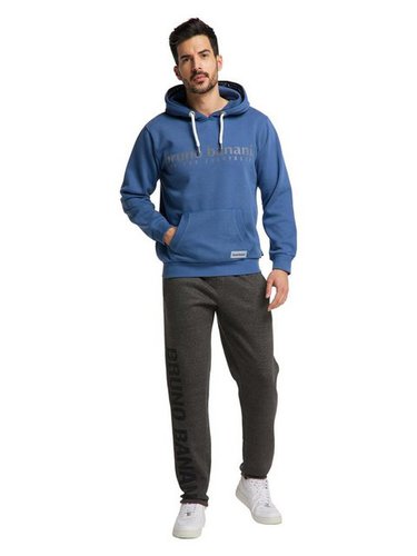 Sportlich, bequem und hochwertig sind die Sweatshirts von bruno banani. Die angeraute Innenseite ist ebenso gemütlich wie die doppellagige Kapuze mit Tunnelzug und Kordel oder die Kängurutasche auf der Vorderseite. Der große Logo-Print und die Rippbündchen am Saum, Ärmelenden und an der Tasche verfeinern den Gesamt-Look.