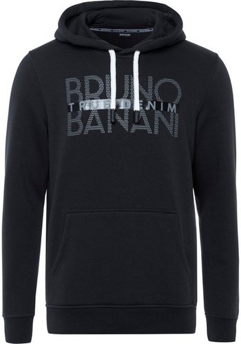 Finde dein neues Lieblingssweatshirt Mit dem Kapuzensweatshirt von Bruno Banani lassen sich schnell neue Outfits zusammenstellen. Durch den Aufdruck wirkt es lässig und peppig. Die langen Ärmel enden in einem Bündchen, das für guten Sitz sorgt. Dieses Sweatshirt ist schmal geschnitten, sodass dein Oberkörper dezent in Szene gesetzt wird. Mit der Kängurutasche, die am Bauch aufgenäht ist, ist der bequeme Hoodie-Look komplett. Die angeraute Sweatware aus Baumwollmischung ist sehr weich und angenehm auf der Haut. Vielseitig kombinierbar Ein cooles sportliches Outfit hast du mit einer Jogginghose oder lässigen Stoffhose, wenn du nächstes Mal zum Training ins Fitnessstudio gehst. Mit einer Bomberjacke und Chucks oder bunten Sneakern ist das Outfit komplett. Dabei sollte die Kapuze über der Jacke getragen werden. Mit deinem neuen Sweatshirt von Bruno Banani steht einem entspannten Athleisure-Look nichts mehr im Weg.