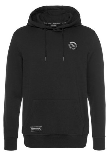 Kapuzensweatshirt für vielseitige Styles Gesucht und gefunden: Schau dir das Kapuzensweatshirt von Bruno Banani mal genauer an. Durch den Aufdruck wirkt es lässig und peppig. Die langen Ärmel enden in einem Bündchen, das für guten Sitz sorgt. Dieses Sweatshirt ist schmal geschnitten, sodass dein Oberkörper dezent in Szene gesetzt wird. Am Bauch ist eine Kängurutasche aufgenäht, in der du dir deine Hände wärmen kannst und die gleichzeitig lässig aussieht. Die angeraute Sweatware aus Baumwollmischung ist angenehm weich auf der Haut und hat einen hohen Tragekomfort. Abwechslungsreich kombinierbar Ein cooles sportliches Outfit hast du mit einer Jogginghose oder lässigen Stoffhose, wenn du nächstes Mal zum Training ins Fitnessstudio gehst. Ziehe ein Sakko darüber, um einen Kontrast zum sportlichen Look zu setzen. Die Kapuze sollte dabei über der Jacke getragen werden. Das sieht lässiger aus und es bilden sich keine unschönen Wölbungen. Das vielseitige Sweatshirt von Bruno Banani ergänzt die Auswahl an stylischen Basics!