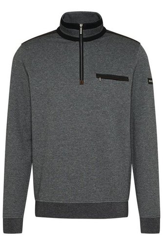 Sweat Troyer aus einer kleinen mehrfarbigen Struktur mit mit Brusttasche. Der Artikel hat Nylon und braune Microma Paspel Details und eine bugatti Metallplakette auf dem Ärmel.