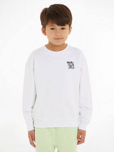 Sweatshirt für einen lässigen Look Das Sweatshirt »PLACED INST. GRID CREWNECK« von Calvin Klein Jeans lockert jeden Look auf und eignet sich für ein lässiges Athleisure-Outfit. Die langen Ärmel enden in einem Bündchen. Das Sweatshirt hat einen Rundhalsausschnitt und ist basic geschnitten, sodass sich Teenies frei bewegen können. Die Sweatware macht das Oberteil dehnbar und hat einen hohen Tragekomfort. Abwechslungsreich kombinierbar Das Sweatshirt lässt sich mit einer bequemen Sweathose und Sportschuhen zu einem lässigen Look zum Relaxen zusammenstellen. Für kältere Tage bietet sich ein T-Shirt darunter an. So hält das Oberteil auch als Alternative zur Jacke her. Das vielseitige Sweatshirt »PLACED INST. GRID CREWNECK« von Calvin Klein Jeans ergänzt die Auswahl an stylischen Basics.