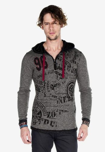 Mit seinem Reißverschluss am Kragen ist dieses Sweatshirt von Cipo &, Baxx ein ausgefallenes Highlight für kalte Tage. Es besitzt eine kuschelige Kapuze, die über Kordeln eingestellt werden kann und coole Prints auf der Front, die für einen sportlichen Akzent sorgen. Elegantere Ellenbogenpatches runden den Look perfekt ab.