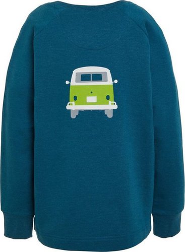 Kinderpullover mit VW Bus - mit Bio-BaumwolleMaterial: 80 % Baumwolle, 20 % Polyester Bio-Baumwolle gebürstete Innenseite (Bio-Baumwolle) offizielles VW-Lizenzprodukt Rundhalsausschnitt mit Rippstrick breite Ärmelbündchen mit Rippstrick VW Bulli-Aufdruck auf der Brust und auf dem Rücken