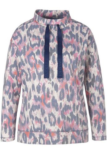 Sweatshirt von EMILIA LAY mit leicht überschnittener Schulter und 1/1-Arm. Passt bestens zu den Hosen dieser Doppelseite und verleiht auch sportiven Street-Styles einen modischen Touch. Tunnelzug und Bindeband im Stehkragen sowie Saumschlitze. Durch den coolen Leo-Print wird jedes Sweatshirt zum Unikat. Länge in Größe 42 ca. 68 cm. Dieses Sweatshirt ist maschinenwaschbar.