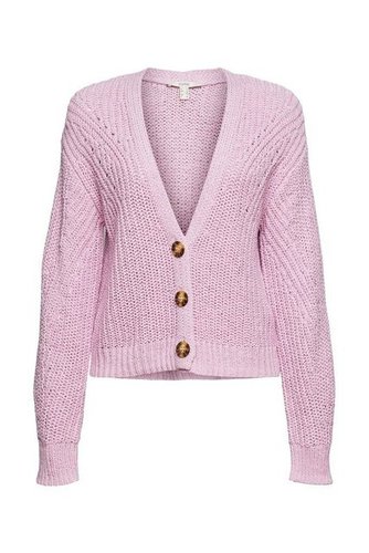 * Luftiger Strick aus Bändchengarn aus pflegeleichtem Baumwoll-Mix * Überschnittene Schultern * V-Ausschnitt * Knopfleiste mit Knöpfen in Hornoptik * Gerader, lockerer Fit