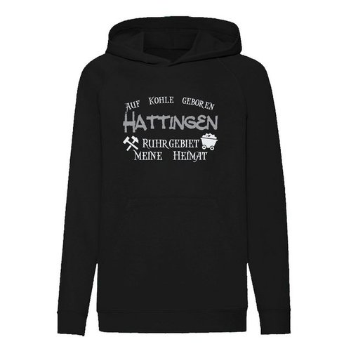 G-graphicsHoodie Auf Kohle geboren – HATTINGEN – Ruhrgebiet, meine Heimat Kinder Hoodie / Kapuzenpullover, Mit Spruch / Sprüche / Print / Motiv