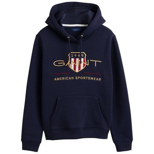 Stylischer Hoodie für Damen von der Marke GANT.Angenehm weicher Baumwoll-Mix. Große Logo-Stickerei, Känguru-Tasche, Kapuze mit Kordelzug.