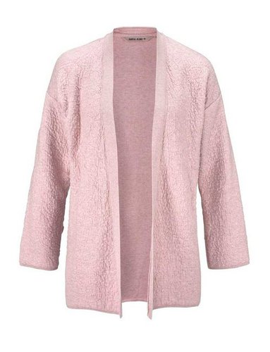 Starker Auftritt garantiert lässig markante Sweatjacke aus angeflauschtem Material in 3D-Optik. Überschnittene Schultern. 3/4-Krempelärmel. Verschlusslose Form. Weiche Wirk-Qualität aus 84% Baumwolle/16% Polyamid. Länge ca. 76 cm.