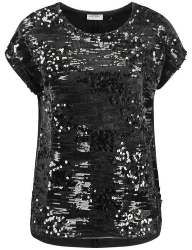 Paspelierter Ausschnitt. Verlängertes Rückenteil mit Teilungsnaht. Die kommende Jahreszeit bringt viele Feste mit sich: Mit diesem eleganten Shirt haben Sie bereits einen Trendstyle mit WOW-Effekt im Kleiderschrank. Der Material-Patch mit dem soft-elastischen Rückenteil hat ein angenehmes Tragefeeling. Ein richtiger Hingucker ist das paillettenbesetzte Vorderteil.
