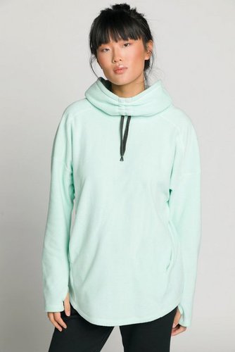 Fleece-Sweater, leicht und kuschelweich. Stehkragen mit Band, überschnittene Schultern, Fledermaus-Langarm. Seitliche Nahttaschen, gerundeter Saum.
