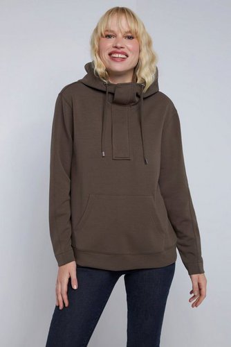 Hoodie Identity, leicht oversized, aus hochwertigem Sweat. Kapuze und Web mit Bindeband und breiter, verdeckter Knopfleiste. Kängurutasche, überschnittene Schultern, Langarm. Elastische Abschlüsse.
