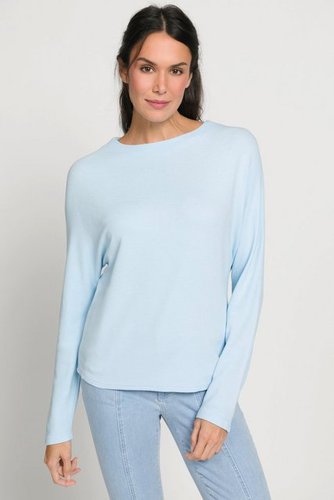 Pullover aus weichem Feinstrick mit angestricktem Stehkragen. Fledermaus-Langarm.