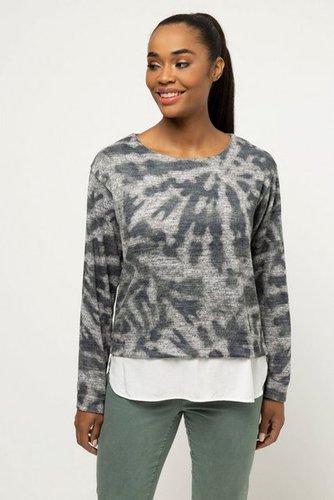 Sweatshirt mit farbigem Print und Lagen-Effekt - Blusenoptik am Saum, hinten länger, mit Seitenschlitzen. Rundhalsausschnitt, Langarm.