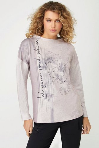 Sweatshirt aus kuscheligem Flausch-Sweat mit modernem Print. Angeschnittener Stehkragen, überschnittene Schultern, Langarm.