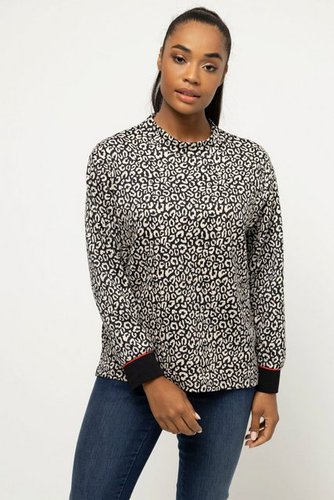 Sweatshirt mit Animal Muster. Lässiger SChnitt und uni Bindeband. Langarm mit uni Abschluss, Seitenschlitze.
