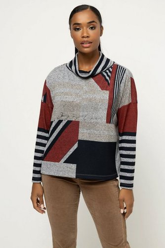 Sweatshirt, oversized, mit grafischem Print und Glitzernieten. Weicher Rollkragen, überschnittene Schultern, Langarm.