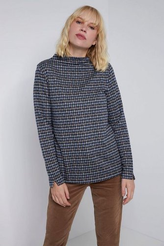 Sweatshirt, Straight Fit, aus weichem Sweat mit farbigem Hahnentritt-Jacquard. Gerade, bequeme Passform mit angeschnittenem Stehkragen und Langarm.