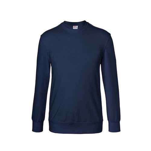 Rundhalsausschnitt mit Halsbündchen und Nackenband|Langarm|Doppelnaht an Arm- und Saumabschluss|Formstabile Ärmel- und Saumbündchen|Leasingkoller|Aufhängebänder im Saum zum Trocknen in der industriellen Wäsche|Fusselfreie Innenseite (French-Terry)|Geprüft nach EN ISO 15797|