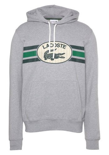 Auf der Suche nach einem neuen Oberteil? Mit dem Kapuzensweatshirt »SWEATSHIRTS« von Lacoste stellst du im Handumdrehen ein neues Outfit zusammen. Durch die Kordel und den Print wirkt es sowohl locker als auch frisch. Dieses Sweatshirt ist hüftlang sowie basic geschnitten, sodass dein Oberkörper dezent in Szene gesetzt wird. Am Bauch ist eine Kängurutasche aufgenäht, in der du dir deine Hände wärmen kannst und die gleichzeitig lässig aussieht. Der Jerseystoff aus Baumwolle ist sehr geschmeidig auf der Haut und dehnbar. Abwechslungsreich kombinierbar Ein cooles sportliches Outfit hast du mit einer Jogginghose oder lässigen Stoffhose, wenn du nächstes Mal zum Training ins Fitnessstudio gehst. Ziehe ein Sakko darüber, um einen Kontrast zum sportlichen Look zu setzen. Die Kapuze sollte dabei über der Jacke getragen werden. Das sieht lässiger aus und es bilden sich keine unschönen Wölbungen. Mit deinem neuen Sweatshirt »SWEATSHIRTS« von Lacoste steht einem entspannten Athleisure-Look nichts mehr im Weg.