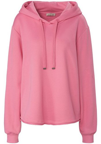 Sweatshirt von MARGITTES mit 1/1-Arm, überschnittener Schulter und Kapuze mit Tunnelzug. Das Vorderteil ist am Saum gerade geschnitten. Das Rückteil ist etwas länger und am Saum abgerundet. Die Säume sind zusätzlich mit einer Rollkante versehen. 100% Baumwolle. Länge ca. 65 cm. Dieses Sweatshirt ist maschinenwaschbar.