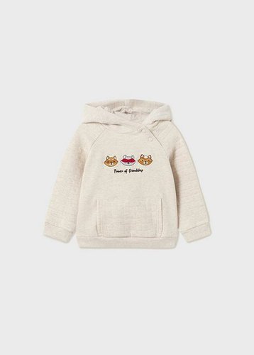 Kapuzenpullover mit Fuchsgesichtern in Beige und Anthrazit. Ein perfekter Begleiter für Ihre sportlichen Aktivitäten. Der Kapuzenpullover verfügt über 2 Druckknöpfe am Hals für einfaches An- und Ausziehen. Ein absolutes Must-Have für jeden Fuchsliebhaber. Mit seiner Kängurutasche und der Kapuze bietet er sowohl Komfort als auch Style. Materialzusammensetzung: Der Kapuzenpullover besteht aus 55% Baumwolle, 44% Polyester und 1% Elasthan, was für eine angenehme Passform und Langlebigkeit sorgt. Diese bequemen und trendigen Kleidungsstück für jeden Anlass.