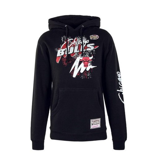 Durch sein Materialmix liegt der Herren Hoody von Mitchell &,, Ness angenehm weich auf der Haut. Durch den lockeren Schnitt und die Kapuze mit Kordelzug ist ein bequemes Tragegefühl garantiert. In der Kängurutasche kannst du kleine Utensilien verstauen oder deine Hände wärmen. Abgerundet wird der Hoody durch den aufgestickten Chicago Bulls-Schriftzug und das Vereinswappen auf der Brust.