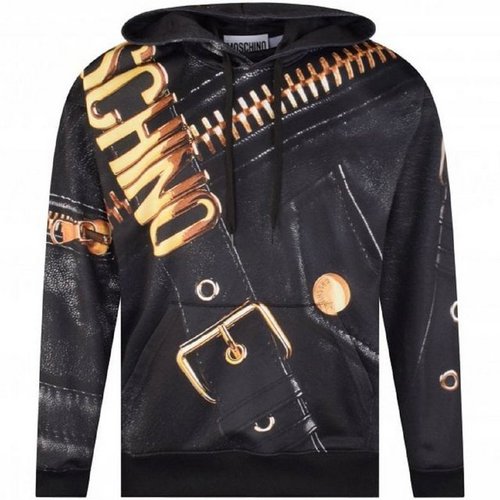 MOSCHINO Macro Biker Print Zip Pullover Hoodie. Hoodie mit Kordelzug, Gedruckt mit Exklusiv Deko und Moschino Typisch Rockig. Vordere Mitteltasche. Details Marken , Moschino .Farbe, Schwarz Material, 100% Polyester Futter: 96% Polyester, 4% Elasthan