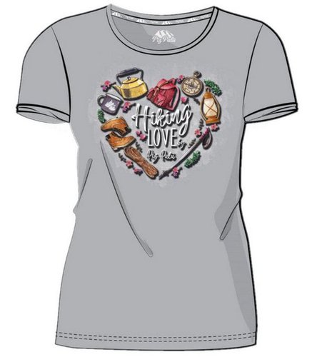 Mit dem Altusried Shirt wird Wandern zum Vergnügen.- alpine Motiv- vielen Utensilien sind liebevoll in Herzform angeordnet- Material: 100% Baumwolle