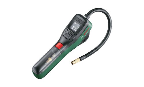 Boschs intuitive und handliche Druckpumpe Aufpumpen bis 10,3 bar mit Echtzeitmessung und Vorwahlfunktion Ideal zum Aufpumpen von Reifen (Auto, Motorrad, Fahrrad), Bällen und kleineren Wassersportartikeln Alles griffbereit zur Hand: Verschiedene Adapter sind ordentlich im Werkzeuggriff verstaut Intuitiv und praktisch: bedienerfreundliches, ergonomisches und kleines Design mit großem Display Integrierter Akku und USB-C®-Ladung, helle Beleuchtung durch LED-Lampe Technische Daten: Max. Druck: 150 PSI / 10.3 bar / 1050 kPa Akkuspannung: 3,6 V Akkulaufzeit: 6 Trekking Reifen (28x1.5 700x38C), 0 - 4,5 bar Ø Pumpdauer 0 - 4,5 bar: 2:13 min Luftdurchsatz bei 0 bar: 10,6 l/min Schlauchlänge: 24 cm Autostopp Funktion: ja Ladeanschluss: USB-C® Gewicht: 0,43 kg Produktabmessungen (LxBxH): 215 x 49 x 106 mm Lieferumfang: Französisches Ventil, Ballnadel, Volumenadapter, USB-Kabel, Stofftasche