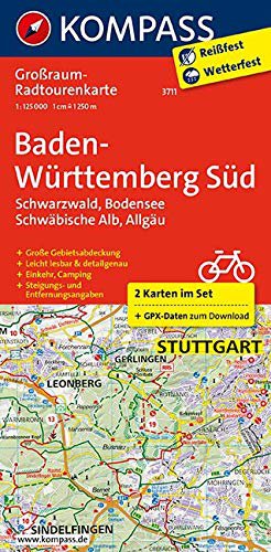 KompassBaden-Württemberg Süd, Schwarzwald, Bodensee, Schwäbische Alb, Allgäu: Großraum-Radtourenkarte 1:125000, GPX-Daten zum Download (KOMPASS-Großraum-Radtourenkarte, Band 3711)