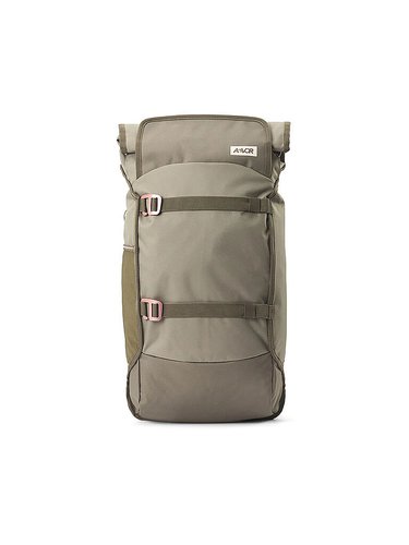 Dein TRIP PACK ist ein echter Allrounder und hat dank Rolltop zwischen 26 und 33 Liter Platz. Auch als Handgepäck geeignet. Details: Zwei Zugänge zum Hauptfach: Rolltop-System mit Klettverschluss und umlaufender Zipper am Rücken, abnehm- und verstellbarer Brustgurt, atmungsaktives Mesh-Rückenteil und zusätzliches Bodenfach Geräumiges 15″ Laptopfach. Maße: 27x 3x 38 cm (B/T/H), Mesh-Seitenfach für den Coffee to go Die Außenstoffe deines TRIP PACKs bestehen zu 50 % aus PET Flaschen. Dein TRIP PACK lässt dich nicht im Regen stehen und bringt dich dank stark wasserabweisender Funktion trocken ans Ziel Farbbezeichnung: Oakwood Die Marke AEVOR ist Mitglied der Wear Fair Foundation