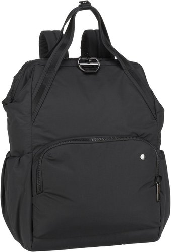 Mit Pacsafe gut geschützt gegen Taschendiebstahl: Modischer Laptoprucksack für Frauen passend für A4-Formate und mit Fach für Laptops bis 31x24x2,5 cm. Volumen: 17 Liter.