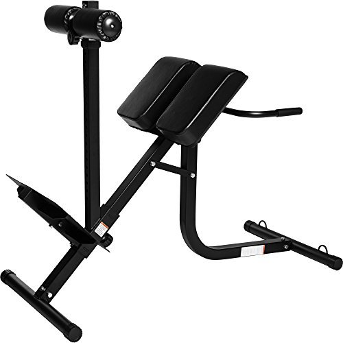 💪 GORILLA SPORTS BAUCH- UND RÜCKENTRAINER – ist durch sein 4-fach einstellbares Oberschenkelpolster und sein 21-fach höhenverstellbares Beinpolster flexibel einstellbar\n💪 EINSATZ / TRAINING – ergonomisch optimal einstellbar für ein effektives und abwechslungsreiches Bauch- und Rückentraining Zuhause\n💪 HIGHLIGHTS – Fixierung mit Schnellverschlüssen und praktischen Stützen - rutschfeste Füße für einen sicheren Stand – idealer Komfort durch Bein- und Oberschenkelpolsterung mit Kunstlederbezug – weiche Griffe – mehrfache Polsterverstellung passend für unterschiedliche Körpergrößen und -proportionen – aus stabilen Vierkantrohr Stahlrahmen\n💪 MAßE – 143 x 60 x 101,5 cm, max. Belastbarkeit: 120 kg; geeignet für max. Körpergröße von 185 cm\n💪 VERSAND – 1x schwarze Hyperextensionsbank mit verstellbaren Bein- und Oberschenkelstützen