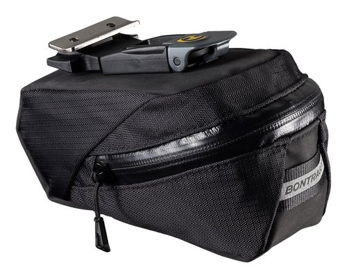 Das gewisse Extra an Stauraum. Die Satteltasche Bontrager Pro Quick Cleat ist für Fahrer, die ständig unterwegs sind. Das Quick Cleat-Befestigungssystem macht das Wechseln der Packs auf ein anderes Rad schnell und einfach und sorgt dafür, dass du das Wichtigste immer dabeihast. Die aus robustem Nylon gefertigte, leichte Konstruktion schützt deine Utensilien auf all deinen Abenteuern. Highlights Lässt sich dank praktischer Quick Cleat-Befestigung in Sekundenschnelle anbringen und abnehmen.Innenfächer bewahren Kreditkarte und andere Wertsachen sicher aufLasche zur einfachen Anbringung eines Rückleuchten-ClipsReflektierende Elemente erhöhen die Sichtbarkeit, damit du auch nachts wahrgenommen wirstLeichtes und robustes Material widersteht den Elementen und schützt den Inhalt zuverlässigMit den meisten Carbonsattelstreben kompatibel Technische Daten Packvolumen: 0,93 LTaschentyp: SatteltaschenAbmessungen: 16.5 x 8.5 x 8.5 cm (L x B x H)Befestigung: Quick CleatMaterial: WebstoffFasergehalt: 84,1% PU-beschichtetes Nylon, 15,9% Hypalon Pro Quick Cleat Satteltasche M, Bontrager