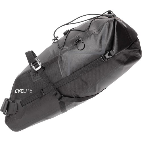 **Die geräumigste Cyclite Satteltasche, die sich einfach stabil und wackelfrei anbringen lässt. Ultra-leicht. Robust. 100% Wetterfest.** Die Saddle Bag Satteltasche ist der Klassiker unter den Bikepacking-Taschen. Hier lässt sich im Windschatten des Fahrers richtig viel Gepäck unterbringen. **Ultraleicht:** Spare Energie, komme weiter, behalte die Dynamik Deines Rads und maximiere Dein Fahrerlebnis! Die Bikepacking-Taschen von CYCLITE sind der Konkurrenz weit voraus! **Wetterfest, langlebig und leicht zu reinigen** Fahre bei jedem Wetter, schütze Deine Wertsachen und halte Dein Gepäck trocken. Die Cyclite Taschen sind Hochfrequenz-verschweißt und bestehen aus hochwertigem, superstarkem und dennoch leichtem Gewebe, das sie auf beiden Seiten beschichtet haben, um maximale Robustheit und Reinigungsfähigkeit zu gewährleisten. **Maximaler Halt - kein Hin- und her schwingen** Kein Verrutschen der Tasche im Wiegetritt dank SR-Halterung und innerer Carbon-Verstärkung. **12,9 l Volumen und voller Funktionen.** Das Volumen lässt sich auf ca. 9 Liter durch mehrfaches Einrollen verringern. Die Saddle Bag benötigt einen vertikalen Mindestabstand zwischen Sattelgestell und Hinterradreifen von 23 cm (gemessen im zusammengedrückten Zustand bei Fullies). Der Auszug der Sattelstütze bzw. die Sattelstützenlänge bis zum Ansatz der Sitzstreben muss mindestens 15cm betragen. Falls die Sattelklemme über die Sattelstütze herausragt, sollte sie nach vorne gedreht werden, um Reibung mit der Tasche zu vermeiden. Wird eine absenkbare Sattelstütze verwendet, muss die Absenkung ebenfalls berücksichtigt werden, um ein Aufsetzen der Tasche auf dem Hinterreifen und eine mögliche Beschädigung dadurch zu vermeiden. Auch perfekt für die Nutzung mit Aero Sattelstützen geeignet. Maximale Stützenbreite = 6cm. Eine Nutzung mit Carbon Sattelstützen ist ebenfalls problemlos möglich. **Plastikfreie Verpackung** Als Radfahrer, die die Natur lieben, macht Cyclite alles, um ihren Fußabdruck zu minimieren - deshalb wird Plastikmüll vermieden.