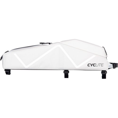 **Die lange Oberrohrtasche von Cyclite mit zwei Fächern, Magnetschnalle und viel Stauvolumen. Ultra-leicht. Robust. 100% Wetterfest.** Top Tube Bag Large / 01 ist die größere Schwester von Top Tube Bag / 02 und mit 2,2 Litern Volumen auf dem Oberrohr die Lösung für alle diejenigen, die längere Zeit unterwegs sind, in ihrem Rahmen keinen Platz für eine FRAME BAG haben oder die sich den ‚Luxus‘ von mehr Stauraum mit direktem Zugriff während der Fahrt wünschen. Trotz großem Volumen ist Top Tube Bag Large / 01 eine ultra-leichte Tasche, die ihre Fans besonders bei Ultra-Distanz-Fahrern finden wird. Ultra-leicht: 174g (ohne Trennwand) / 188g (komplett) Spare Energie, komme weiter, behalte die Dynamik Deines Rads und maximiere Dein Fahrerlebnis! Die Bikepacking-Taschen von CYCLITE sind der Konkurrenz weit voraus! Wetterfest, langlebig und leicht zu reinigen Fahre bei jedem Wetter, schütze Deine Wertsachen und halte Dein Gepäck trocken. Taschen von CYCLITE sind Hochfrequenz-verschweißt und bestehen aus hochwertigem, starkem und dennoch leichtem Gewebe, das auf beiden Seiten beschichtet ist, um maximale Robustheit und Reinigungsfähigkeit zu gewährleisten. 2,2 l Volumen und voller Funktionen Top Tube Bag Large / 01 kommt mit einem sehr großen Zugriff auf das vordere Fach, das mit Überwurfdeckel und Fidlock-Magnetschnalle verschlossen wird. Das hintere Fach lässt sich mit einem mittigen, wasserfesten Reißverschluss öffnen und dient damit zum Verstauen von Dingen, auf die man seltener während der Fahrt zugreift. Die beiden Fächer lassen sich kombinieren, indem die Trennwand per Klett entfernt wird. An der Vorderseite hat die Top Tube Bag Large / 01 einen Kabelausgang. Die Top Tube Bag Large benötigt einen Mindestabstand Steuerkopf-Sattelstütze von 44 cm. Sie ist mit der FRAME BAG (LARGE) und den meisten Rahmentaschen kompatibel, da die Position der Fixierungsgurte verschoben werden kann. **Plastikfreie Verpackung** Als Radfahrer, die die Natur lieben, macht Cyclite alles, um ihren Fußabdruck zu minimieren - deshalb wird Plastikmüll vermieden.