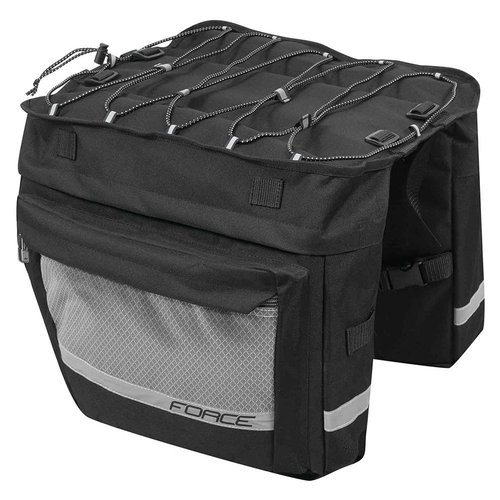 Verstärkter hinterer Double-Bag Force Noem.Mit Riemenbefestigung am Gepäckträger.2 große Taschen mit Reißverschluss + 2 kleine Taschen mit Reißverschluss.Elastischer Riemen auf der Oberseite, reflektierende Eigenschaften.Riemen für Blinklicht.Höhe:32 cm, Obere Seitenlänge:37cm,.Breite inklusive Tasche:16cm.Volumen von 1 Beutel:Ca.18 L, Gesamtvolumen:Ca.36 L.Material:Polyester.Gewicht:1080 g, maximale Belastung:15 kg, verpackt im Polybeutel.